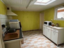 Maison d'habitation de 106 m² comprenant au rez-de-chaussée : petite véranda de 7 m² - cuisine aménagée (9.89 m²) - salle à manger (13 m²) - coin salon avec chaudière gaz (13.24 m²) - bureau avec placards (12.32 m²) - salle d'eau avec placards (2.93 m²) - WC - Dégagement A l'étage une chambre avec WC (14 m²) et une chambre avec lavabo (16.65 m²). Chauffage par chaudière gaz avec production d'eau chaude - Menuiseries double vitrage PVC - Combles isolés - Tout à l'égout. Jardin non attenant avec cour goudronnée et garage. Terrain constructible de 275 m² comprenant un garage ossature bois et un poulailler de 45 m² avec volière.