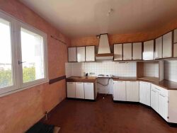Maison d'habitation de 100 m² comprenant à l'étage : Entrée dans couloir avec placards- Cuisine aménagée (10.7 m²)- Séjour/ salle à manger (26.14 m²) avec insert bois, une baie vitrée ouvrant sur un balcon - 3 chambres (10.1 m², 10.2 et 11.75 m² avec placards) - Salle d'eau (6.2 m²)- WC. (travaux de finition à prévoir avec le remontage des radiateurs qui ont été repeints).