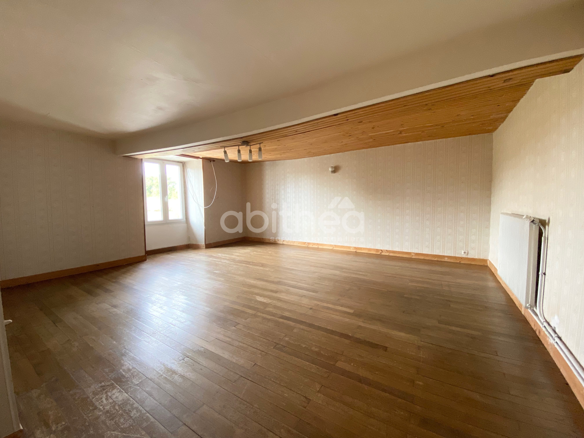 Située dans un bourg entre Chabanais et Roumazières-Loubert., avec un accès rapide à la nationale 141, Saint-Junien à 20 mn et Angoulême à 40 mn. Maison d'habitation comprenant au rez-de-chaussée : pièce de vie de 68 m² - salle à manger de 25 m² - salon - cuisine - WC. Au 1er étage : Palier - couloir - 3 grandes chambres avec parquet d'origine - bureau - salle de bains - WC. Au 2ème étage : grenier aménageable. Garage attenant avec espace chaufferie (chaudière récente) et atelier, cave. Menuiserie survitrage bois et verre sécurit côté bar/restaurant - Porte entrée PVC - Chauffage au gaz de ville avec production d'eau chaude - Combles isolés - Assainissement par tout à l'égout. Cette maison abrite un bar encore en activité avec possibilité d'acheter une licence 4 en plus. Cette grande maison a un fort potentiel avec la possibilité d'aménager le rez-de-chaussée en logement ou de continuer une activité commerciale. Parking en face de la maison. L'ensemble pour une surface de 1040 m²