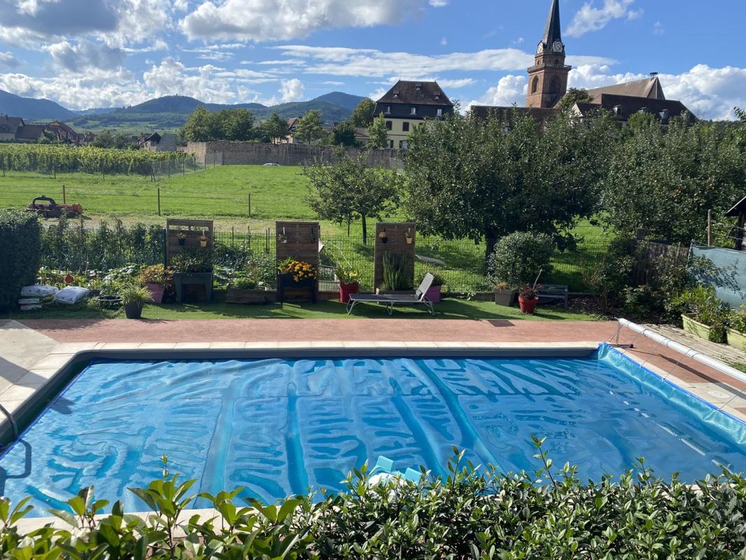 Villa avec piscine 2004 160m2 sans travaux au moins 5 chambres Baldersheim Dans un quartier résidentiel proche des accès autoroutiers, à 6km de Mulhouse et 20mn de Bâle, cette maison moderne de 6 pièces sur un jardin paysager bénéficie de prestations haut de gamme. Parfaitement entretenue, elle dispose d'une piscine 6 x 3.5m et d'un jacuzzi chauffés. Après une double entrée d'une dizaine de m2 avec une belle perspective, au rez-de-chaussée un espace de vie de plus de 42m2 avec accès direct sur la terrasse, une chambre ou bureau, une salle d'eau avec douche à l'italienne et un WC séparé. Une cuisine et son coin repas d'environ 14m2 donnant notamment sur la terrasse avec pergola automatisée permettant de réguler l'intensité du soleil, un abri de jardin. Depuis un escalier lumineux, à l'étage, un pallier spacieux donne sur 4 chambres claires et une salle de bain avec baignoire, cabine de douche et WC. Au sous-sol entièrement carrelé, un garage de plus de 31m2 équipé d' une porte sectorielle automatisée. Une pièce de loisirs de plus de 13m2 utilisable en bureau ou chambre d'appoint. Un cellier et une cave à vin. Cette maison dispose d'un chauffage au sol et d'une climatisation réversible haut de gamme. Taxe foncière 1.158EUR Diagnostiques en cours de réalisation. Maison disponible au 1er septembre en raison d'un déménagement. Plus de renseignements sur notre site AFIM-IMMO.fr AFIM-IMMO.FR contact@afim-immo.fr Tel: +33 7 56 96 18 18