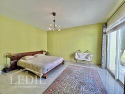 Dès l'entrée, un hall vous accueille, desservant un WC indépendant et un bureau. Il mène ensuite à un spacieux salon-séjour baigné de lumière, agrémenté de trois baies vitrées offrant une vue imprenable sur le jardin et la piscine.