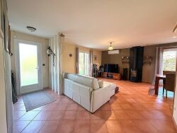 Implantée sur une parcelle de 1500 m2 avec piscine, elle est composée d'une entrée, d'un séjour de 30 m2 avec un poêle à bois, une cuisine ouverte de 9 m2 avec buanderie adjacente, 4 chambres de 10 à 15 m2, un grand bureau en mezzanine de 25 m2, 2 salles d'eau, 2 wc et une cave à vins. Elle est complétée par un double garage avec rochelle de 40 m2, un atelier et un abri de jardin. La piscine vient tout récemment d'être rénovée et est entourée d'une grande terrasse dont une partie couverte par une pergola.