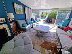 3% Immobilier Saint-Raphaël présente : charmante maison mitoyenne avec piscine à Boulouris, d'une surface d'environ 96 m2 habitable. Elle se compose d'une salle à manger avec mezzanine, d'une cuisine tout-équipée, de 2 chambres de plain-pied, d'une salle d'eau et d'un wc indépendant avec lave-main.
