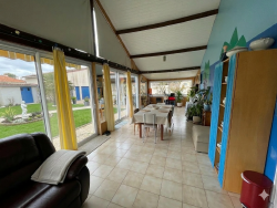 Votre agence La Nouvelle Adresse vous propose à la vente cette maison avec piscine située dans le bourg de Frontenay-Rohan-Rohan Elle se compose d'une cuisine équipée et aménagée, d'un salon avec poêle à bois, une salle à manger donnant sur une véranda spacieuse et lumineuse d'environ 36m2, trois chambres dont une avec sa salle d'eau,un cellier, un dégagement, une autre salle d'eau et un WC. Une mezzanine aménagable surplombe le séjour. Du côté jardin, vous profiterez d'une jolie pisicine, un local technique indépendant avec WC et d'un double garage. Les points forts : pompe à chaleur reversible, VMC récente, poêle à bois Note : certaines photographies ont été optimisées par intelligence artificielle afin de dépersonnaliser et d'épurer les volumes ; aucun élément structurel ou technique n'a été modifié Les informations sur les risques auxquels ce bien est exposé sont disponibles sur le site Géorisques : www.georisques.gouv.fr Contactez - nous au plus vite pour caler une visite ou pour plus d'informations au 05 49 04 37 36