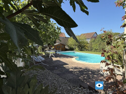 Au calme absolu ! Ne m'en voulez pas si quelques sifflements d'oiseaux accompagnent votre relaxation au bord de la piscine... Rareté à quelques minutes de Strasbourg : un vaste jardin à l'arrière de la maison , à l'abris des regards , avec grande piscine familiale , la parcelle fait 8,29a...Vos enfants peuvent s'y défouler , tandis que le barbecue entres amis se prépare à l'ombre du figuier...Vous passerez vos week-end au soleil, à faire bronzette ...Si vous avez la main verte , un superbe potager très entretenu vous tend les bras...et que des dire des rosiers , des arbres fruitiers...J'adore ! Un soin tout particulier a été fait pour ce très beau jardin... La maison ? Conviviale, elle invite à la reception d'amis ou famille également grâce à la pièce de vie de 45m2 ! Une belle tablée , un coin plus intimiste côté cheminée...vous imaginez ? La Cuisine séparée est attenante au séjour et donne accès sur la terrasse / Pergolas couverte , pratique en toute saison. Un toilette séparé en plus d'une belle entrée complètent le RDC. À l'étage : 2 coins bureau sur le pallier , une chambre de 19m2 vue piscine, une seconde chambre de 12,5m2 et une 3eme chambre de 24m2 avec salle d'eau privative ! Possibilite de revenir à l'agencement d'origine en recréant une 4eme chambre . Une salle de bains (bain , douche) et un second toilette séparé complètent le descriptif Vaste sous-sol avec buanderie (maison familiale vous dis-je !) , double garage , rangements ... A l'extérieur , une cour pavée pour vos voitures par exemple à l'avant. Maison isolée, chauffage gaz par le sol , DPE 'D' La rue se termine en impasse , à proximité le centre d'Ostwald avec les commerces , les écoles, le tram...