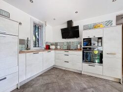 Elle se compose: au rez-de-chaussée: d'un grand séjour toit cathédrale décoré avec soin avec sa jolie cheminée, d'une chambre avec placards, d'une cuisine indépendante moderne, d'une salle de bains et d'un WC indépendant, Au premier étage: deux chambres dont une ouvrant sur une terrasse, un bureau et une salle d'eau;
