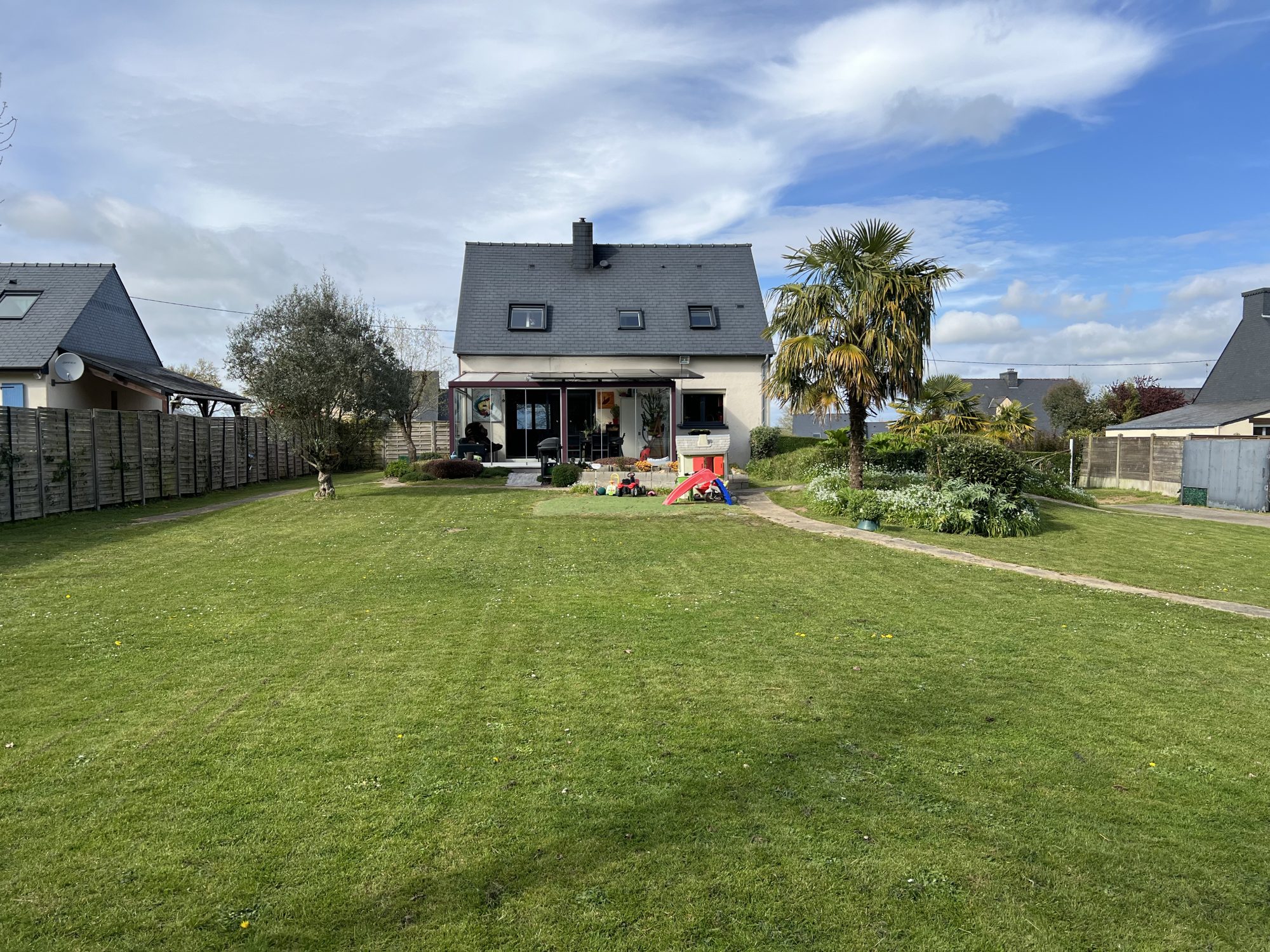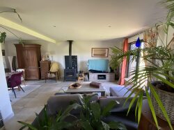 Maison à seulement 5 minutes du centre-ville de PONTIVY en voiture. Construite en 2004-2005 sur un terrain de 2059 m2. Au rez-de-chaussée, salon séjour de 40 m2, cuisine ouverte équipée et aménagée, bureau, deux chambres dont une avec salle d'eau, salle de bain. A l'étage, grande mezzanine, deux chambres, salle d'eau, WC. Terrasse de 40 m2 avec strore banne. Garage et abri de jardin.