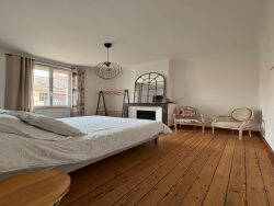 À l'étage, on trouve une deuxième suite parentale avec salle d'eau, ainsi que deux autres grandes chambres dont une avec balcon et une salle de bain avec douche, baignoire et un grand dressing.