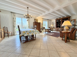 Côté rue avec une entrée indépendante, vous disposez d'une deuxième maison idéale pour recevoir de la famille ou des amis ou un revenu locatif, comprenant salon, salle à manger de 34,21 m2 avec insert bois, cuisine indépendante de 16 m2, une première chambre de 18 m2, WC avec vasque, à l'étage une seconde chambre de 22,18 m2 avec salle d'eau de 4 m2 et un espace mezzanine bureau avec vue sur la rivière de 9,88 m2.