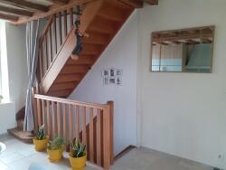 Niveau principal : Une grande cuisine (neuve), un sas qui dessert une salle d'eau, un wc, une mezzanine et une chambre. Un dégagement desservant une salle de bains et une chambre.