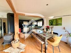 L'agence Stéphane Plaza Colmar-sud vous présente cette charmante maison individuelle de 129 m², un véritable coup de coeur pour ceux qui recherchent à la fois confort, espace et possibilités d'aménagement ! Au rez-de-chaussée, une entrée avec dégagement vous accueille et mène vers une agréable pièce de vie traversante comprenant une cuisine ouverte sur un double séjour lumineux, ainsi que deux chambres confortables. Une salle de bain et un WC indépendant complètent ce niveau. Le rez-de-jardin, entièrement aménagé, offre un dégagement desservant deux grandes chambres supplémentaires, idéales pour recevoir ou pour créer un espace indépendant. Vous y trouverez également une salle d'eau avec buanderie ainsi qu'un vaste garage. La configuration de ce niveau se prête parfaitement à l'installation d'une activité professionnelle ou libérale, tout en préservant l'indépendance du reste de la maison. A l'étage, les combles aménageables offrent un très beau potentiel pour créer de nouvelles pièces selon vos besoins : trois chambres avec salle d'eau, suite parentale, salle de jeux, bureau, ou espace détente. Le chauffage est assuré par un poêle à bois, complété par des radiateurs électriques. Les fenêtres sont en bois double vitrage. Un bien rare, modulable et parfaitement adapté à une famille comme à un projet mixte habitation/profession. Un jardin bucolique entoure la maison, située dans un environnement particulièrement calme. Accès rapide : Colmar à 10 minutes, Sélestat à 15 minutes. Pour tout renseignements complémentaires vous pouvez contacter votre agence Stéphane Plaza Colmar-sud. Geoffroy LANG (EI) Agent Commercial - Numéro RSAC : 532 437 597 - COLMAR.