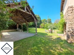 SOUS COMPROMIS avec ALLIANCE IMMOBILIER Maison BECHEREL 6 pièce(s) 169 m2 orientée SUD, à proximité de l'école maternelle/primaire, des cars scolaires pour collèges et lycées, à 3 minutes des commerces, des bus BREIZHGO pour RENNES, à 8 min de l'axe RENNES-ST MALO, à 13 min de l'axe RENNES-ST BRIEUC, à 30 min de Rennes (EN SAINT-PERN), style LONGERE mitoyenne sans vis-à-vis, avec beaucoup de charme (pierres et poutres apparentes) comprenant : - au RDC : entrée (rangement), Salon 37 m² env avec poêle à bois, Cuisine / Séjour aménagée et équipée (feux gaz + four + hotte + réfrigérateur + lave-vaisselle) 45 m² env, wc ; - à l'ETAGE : mezzanine / poss 4ième chambre ou bureau, 3 chambres de 12 + 13 + 14m² env avec placards, wc, salle de bains ; Combles isolées en 2018. DEPENDANCES : chaufferie/lingerie 15 m² (chaudière fuel +/-2007) + 2 PREAUX 19 m² et 33 m² + débarras. Le tout sur un terrain paysagé de 1 679 m². Cette longère est chauffée au bois et au fuel. (l'assainissement est collectif et conforme). ALLIANCE IMMOBILIER : 02 99 06 39 39 2 rue de Romillé 35360 Montauban de Bretagne