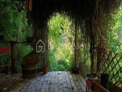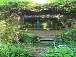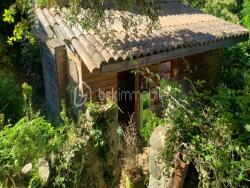 Sur ce terrain en parti boisé se trouve un potager cultivé en buttes; une serre; un garage de 20m2 et une petite cabane en bois de 10m2 avec une petite terrasse.