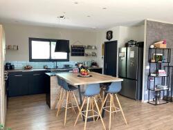 46000 Cahors à 20 minutes au sud, maison bois de plain-pied de près de 130m² , 6 pièces, 4 chambres, construite en 2016/2017, en très bon état. Terrain de 6500m² environ, jolie vue. Commerces à proximité. Salon salle à manger et cuisine ouverte 52m², 4 chambres dont une suite parentale avec salle d'eau et dressing privatifs, salle de bain avec wc + wc séparés, cellier-buanderie. Chauffage par clim réversible, poêle à bois et radiateurs électriques à inertie, volets roulants électriques. Fosse septique. Taxe foncière 1350 euros. DPE B (Montant moyen estimé des dépenses annuelles d'énergie pour un usage standard établi à partir des prix de l'énergie le 01/01/2021 : entre 630 et 852 euros).