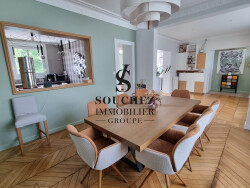 A la recherche d'un bien mêlant le charme de l'ancien avec des prestations modernes dans un cadre unique ? Dès votre arrivée, vous serez surpris par cette imposante bâtisse de type maison bourgeoise offrant des volumes généreux pour combler votre famille. L'habitation répartie sur deux niveaux propose au rez-de-chaussée un hall d'entrée desservant une salle à manger avec un sompteux sol en parquet chevrons entièrement rénové, un salon lumineux avec vue dégagée sur la piscine et le parc, une cuisine équipée et un WC. Au premier étage, 2 chambres, un bureau, une salle d'eau et un WC. Au deuxième étage, 2 chambres supplémentaires et une salle de bains avec WC. Tous les espaces ont été pensés en optimisant le rangement grâce aux meubles sur mesure qui resteront sur place ! Votre quotidien n'en sera que plus agréable ! Le charme offert par les pièces de vie se prolongera sur les extérieurs avec une piscine chauffée avec abri motorisé, une cuisine d'été, un parc arboré dans un cadre verdoyant, une terrasse avec une vue dégagée et un terrain de pétanque. Tout est réuni pour passer d'agréables moments de convivialité dans ce décor privilégié où chacun pourra se livrer à ses loisirs. Vous disposerez également d'un garage pouvant accueillir plusieurs véhicules ou pour du stockage ainsi qu'une cave. Ce bien allie cadre de vie et commodités grâce à sa situation idéale sur la commune de Souchez et a bénéficié de nombreux travaux récents comme la climatisation pour vous assurer un confort de vie optimal. Venez la découvrir pour en connaître toutes ses caractétistiques et laissez-vous séduire au fur et à mesure de la visite. Plus de renseignements en agence ou au 03 21 29 34 95.