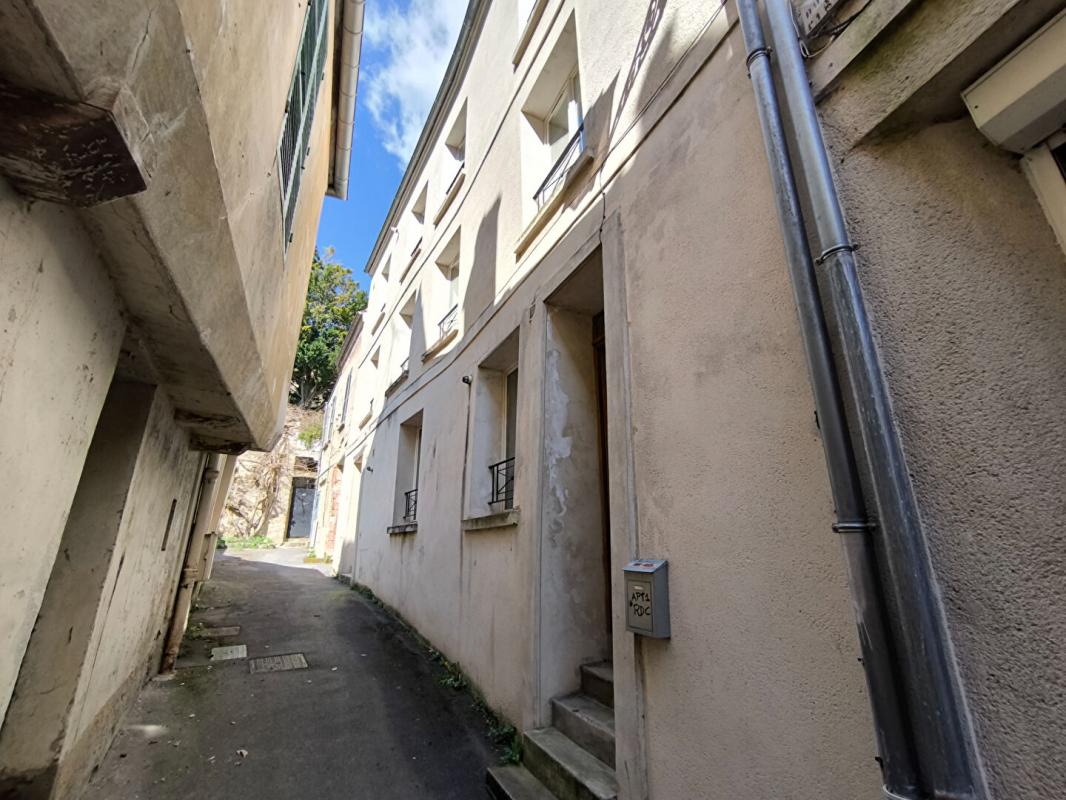 Centre ville. Belle maison bourgeoise d'une surface de 400 m² sur 4 niveaux comprenant en rez de chaussée une première partie habitable qui dessert une entrée avec des carreaux de ciment, une salle à manger avec cheminée, une cuisine meublée avec accès terrasse, un salon parqueté avec cheminée et placards , un couloir, un WC avec lave mains, une chambre, une salle de bains avec baignoire et douche.