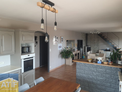 ATIF immobilier, Claudy CARTON vous propose cette maison construite en 2004 de 123 m2 habitable. Elle offre une pièce de vie avec cuisine équipée donnant sur une terrasse couverte, trois chambres, une salle de bain et un w-c. A l'étage une chambre mansardée et un grenier. Sous-sol à usage de garages, buanderie et cave. Terrain clos de 1 826 m2 avec un puits et une vue dégagée.