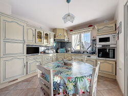 Au centre de Muzillac, cette maison offre un cadre de vie pratique et confortable, où tout est accessible au quotidien. D'une surface d'environ 119 m², elle propose une vie de plain-pied, trois chambres bien agencées et des espaces pensés pour un usage simple et fonctionnel. La maison bénéficie d'un excellent confort thermique, été comme hiver, grâce à ses pompes à chaleur air/eau et air/air, ainsi qu'à une isolation performante (DPE B). La véranda, lumineuse et agréable, constitue un espace supplémentaire apprécié en toute saison. Le sous-sol complet apporte un réel atout en matière de rangement, de stationnement ou d'aménagement selon les besoins. A l'extérieur, le terrain d'environ 800 m² offre un bel espace, facile à vivre, permettant de profiter pleinement du jardin tout en restant proche des commodités. Une maison bien entretenue, confortable et idéalement située, qui conviendra aussi bien à une famille qu'à un projet de résidence principale au coeur de Muzillac. Les informations sur les risques auxquels ce bien est exposé sont disponibles sur le site Géorisques : www.georisques.gouv.fr. (4.30 % honoraires TTC à la charge de l'acquéreur.)