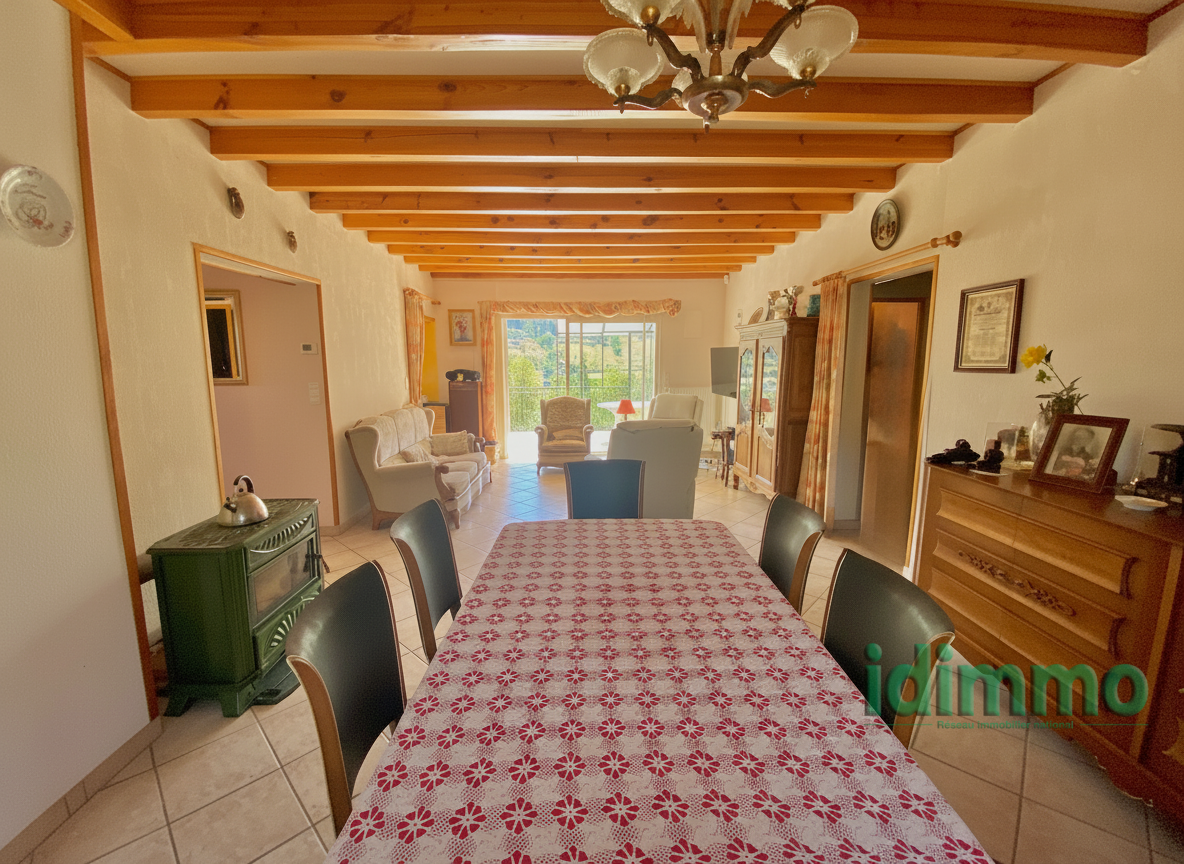 Maison centre du village de SAINT JEAN DE MUZOLS Beau potentiel pour cette maison de 154 m2 habitable sur deux niveaux Au rez de chaussée, vous avez une belle entrée qui dessert une grande chambre avec sa salle d'eau et sa terrasse privative + une pièce de vie avec véranda A l'étage, une cuisine fermée avec cellier, salle à manger avec un accès à un balcon, une grande pièce de vie de 38 m2 avec une grande terrasse, une grande chambre, une salle de bain avec douche et un WC séparé. Le bien dispose également d'un grand garage et d'une cave Possibilité de créer deux chambres supplémentaires, Commodité à 5 minutes à pieds Chauffage , fioul + cheminée + Clim réversible Chauffe-eau thermodynamique solaire Pour plus de renseignement 04.75.08.74.22