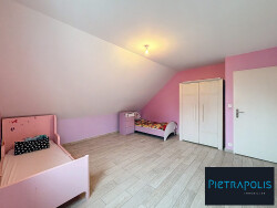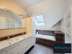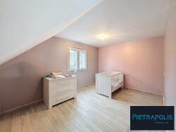 À l'étage, vous trouverez trois chambres spacieuses et une salle de bain, avec baignoire et douche. Un autre wc indépendant complète ce niveau.