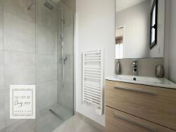 Les prestations sont au rendez-vous : sols et escalier en chêne massif, domotique, volets motorisés et centralisés, menuiseries aluminium, pompe à chaleur air/eau, construction en brique rouge et DPE A.Tout a été pensé pour le confort, la performance et la durabilité.