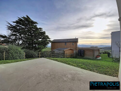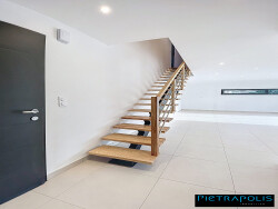 Pièce de vie lumineuse de 36 m² avec grande baie aluminium double vitrage. 4 chambres, dont une suite au rez-de-chaussée, salle de bains à l'étage, 2 WC indépendants. Chambres avec placards aménagés.