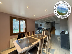 NANCES-EXCLUSIVITE Secteur proximité Lac- A43 accès rapide- Maison de 128m² hab.-148m² au sol+ dépendances en bon état sur terrain de 1635m² clos de portail récent automatisé. Entrée avec rangement, wc indépendant, cellier/buanderie, Salon/séjour avec cuisine équipée récente , sur terrasse sud, 4 chambres et un bureau ouvert, 2 garages, grenier/rangement accessible en combles, salle d'eau + salle de bains. Poêle à granulés flamme verte 7,9kw de 2022 +Chauffage électrique + Panneaux photovoltaïques garantis 2036. DPE C- FIBRE OPTIQUE-citerne Eau pluv. 3000L enterrée-Honoraires à charge vendeur.