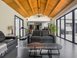 Votre agence LA ROCHELLE FRENCH PROPERTIES spécialisée dans la vente de biens de prestige, vous propose cette maison contemporaine entièrement de plain-pied, idéalement placée sur une commune a seulement quelques minutes du centre LA ROCHELLE. A proximité des commerces et du centre-ville, cette maison de plain-pied, de 5 pièces, 4 suites, d'une superficie de 159 m2 environ en parfait état offre de très beaux volumes. Elle se compose d'une entrée spacieuse avec dressing d'accueil, une belle pièce de vie traversante avec cuisine ouverte de 58 m2 environ, une arrière cuisine/buanderie, une suite parentale de 29 m2 environ (chambre, dressing, salle de bains) 3 autres suites (chambre et salle d'eau) et 2 wc séparé. A cet ensemble s'ajoutent un garage de 24 m2, un local piscine, une piscine 8 x 4 chauffée avec volet roulant électrique, un jacuzzi, une douche extérieure, plusieurs emplacements de stationnement sur parcelle. Maison avec climatisation réversible, système hifi bose, adoucisseur d'eau. Produit rare sur le secteur. VISITE VIRTUELLE DISPONIBLE SUR DEMANDE. Coût annuel d'énergie du logement entre 460EUR et 680EUR par an - Les informations sur les risques auxquels ce bien est exposé sont disponibles sur le site Géorisques : www. georisques. gouv. fr Les informations sur les risques auxquels ce bien est exposé sont disponibles sur le site Géorisques : www.georisques.gouv.fr