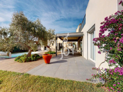 Magnifique maison contemporaine moderne de 183 m2 avec superbe espace extérieur (piscine, terrasse avec pergola bioclimatique, jardin paysagé). L'aménagement intérieur vous offre de multiples possibilités : Actuellement, le bloc principal (144 m2) est composé d'une magnifique pièce de vie de 60 m2 comprenant une cuisine moderne aménagée et équipée, un bel espace repas et un salon ouvrant sur sa belle terrasse, ainsi qu'une suite parentale aux dimensions exceptionnelles (chambre de 38 m2), salle d'eau 11m2 , 1 WC indépendant et double dressing. Une grande buanderie et une cuisine d'été complètent le tout. Le bloc secondaire de 39 m2 est composé de 2 chambres parentales, chacune avec salle d'eau et WC. L'aménagement actuel est idéal pour une famille avec adolescent ou recherchant une capacité d'accueil semi-indépendante. Le vrai + de cette maison est qu'elle permet de créer facilement 2 chambres supplémentaires dans le bloc principal. Les prestations: Matériaux de qualité, chauffage au sol réversible par pompe à chaleur géothermique, volets roulants électriques centralisés, terrasse bioclimatique avec LED, piscine coque au chlore, toit-terrasse plat avec solarium idéal offrant une vue exceptionnelle sur la cathédrale de Narbonne, carport pour 2 véhicules avec borne de recharche électrique, 2 portails motorisés, une seconde entrée permettant le stationnement d'un camping-car, cabanon extérieur pour rangement (25 m2).