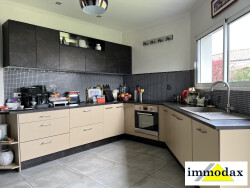 Elle comprend un séjour de 45 m² donnant sur deux terrasses très agréables, une cuisine indépendante, aménagée et équipée, avec un cellier, trois chambres spacieuses avec placard, offrant un confort optimal pour toute la famille.