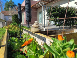 Au rez-de-chaussée, vous trouverez un spacieux séjour baigné de lumière naturelle grâce a de nombreuses ouvertures donnant sur la terrasse avec deux parasols ancrés au sol. Une cuisine américaine aménagée et équipée avec un ilot central ainsi qu'une suite parentale et sa salle de bains complète ce niveau.