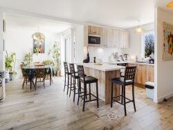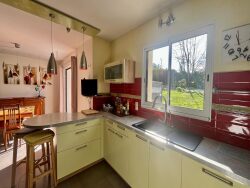 Cette maison contemporaine est en excellent état intérieur et bénéficie d'un chauffage individuel par pompe à chaleur et poêle à bois pour un confort thermique optimal.