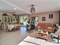 Le double-garage d'environ 45 m² avec portes motorisées et une buanderie-lingerie sont attenants à la maison. La dépendance comprend un autre double-garage (portes motorisées) et à l'étage, par accès extérieur, on trouve un studio. Le terrain d'environ 1600 m² est joliment arboré.