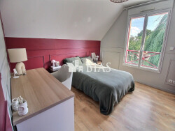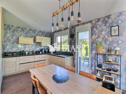 La cuisine aménagée et équipée, semi-ouverte, est de très belle qualité. Un WC indépendant avec lave-mains complète le rez-de-chaussée. Au premier demi-niveau, vous trouverez une pièce palière à usage de bureau, une chambre parentale avec pièce-dressing et salle de bain et douche privatifs. Au second demi-niveau, une spacieuse pièce palière très lumineuse, idéale en salle de jeux ou espace détente, permet d'accéder à trois chambres, à une salle de douches et à un WC indépendant avec lave-mains.