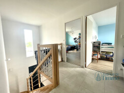 Maison familiale de 2018, encore sous garanties décennales, comprenant : - Au rdc : entrée cathédrale, pièce de vie, cuisine aménagée et équipée, une chambre, WC, garage. - 1er étage : dégagement, trois chambres, WC, salle d'eau.