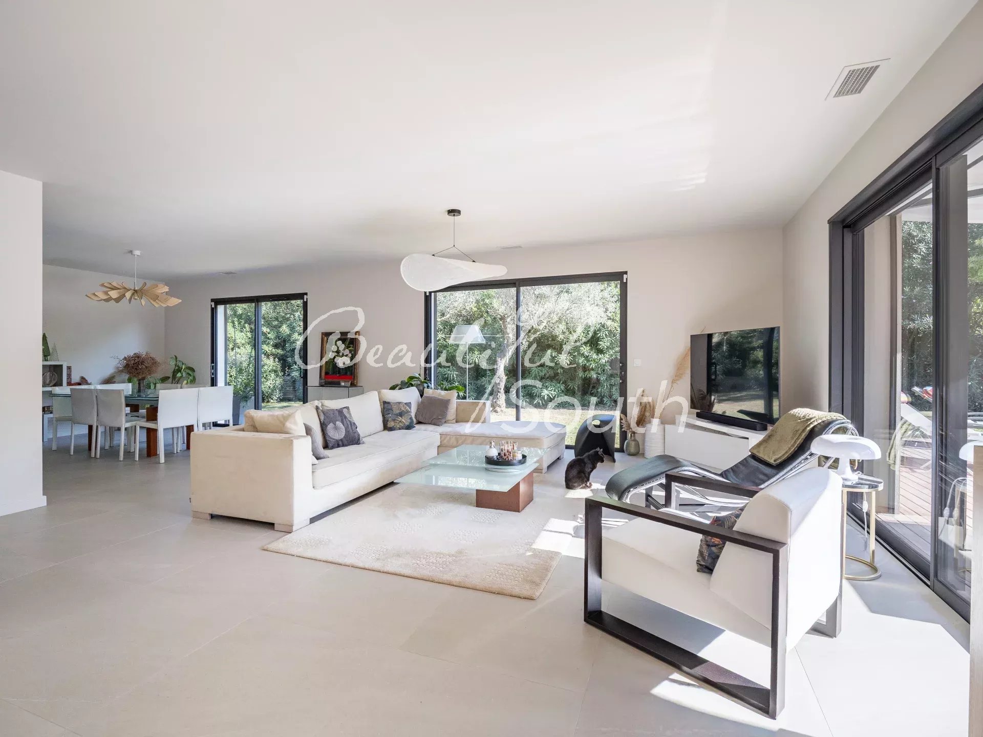 Implantée au sein d'un lotissement prisé de CORNEILLA DEL VERCOL, cette villa de plain pied 4 faces développe environ 170 m2 habitables sur une parcelle plane de 1000 m2. Elle s'organise autour d'une grande pièce de vie lumineuse, composée d'un séjour d'environ 49 m2 et d'une cuisine de 24 m2, ouverts sur l'extérieur grâce à de grandes baies vitrées à galandage. Un bureau attenant à la pièce de vie peut aisément être aménagé en chambre supplémentaire selon les besoins (12 m2). Une entrée et des toilettes avec lave main vous accueillent L'espace nuit propose trois chambres, dont une suite avec dressing et salle de bain / wc (11,12 et 29 m2), une salle d'eau indépendante (6.2 m2) et un dégagement. La maison intègre également une buanderie, un cellier et de nombreux rangements, contribuant à une organisation fonctionnelle des espaces. L'ensemble habitable étant complété par une entrée indépendante et des toilettes avec lave-mains. La maison est équipée d'une climatisation réversible gaînable et d'un chauffe-eau thermodynamique, apportant confort et performance énergétique. À l'extérieur, la maison s'ouvre au Sud sur une grande terrasse en bois exotique munies de stores motorisés, entourant une piscine maçonnée au sel de 5 x 3 m, le tout sans vis-à-vis. Un forage complète les équipements. Un garage de 31 m2 ainsi qu'un espace parking généreux offrent la possibilité de stationner plusieurs véhicules sur la parcelle. Une maison récente et soignée, idéale pour une famille recherchant espace, calme et qualité de vie à proximité de Perpignan et des plages de SAINT-CYPRIEN. Le montant des dépenses annuelles d'énergie pour un usage standard est estimé entre 530 EUR et 780 EUR abonnements compris (prix moyens des énergies indexés sur l'année 2021). Les informations sur les risques auxquels ce bien est exposé sont disponibles sur le site Géorisques : www.georisques.gouv.fr. DISPONIBILITE : JUILLET 2026. Pour toute information supplémentaire, contactez-nous au 06 13 75 25 54. Notre agence, située à Corneilla-del-Vercol, est à votre écoute et disponible sur place.