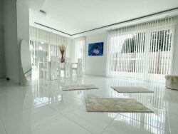 - Au rez-de-chaussée : une grande entrée, une immense pièce de vie de 62 m² ouverte sur cuisine entièrement équipée de 15 m² le tout donnant sur un jardin avec terrasse sans vis à vis, un bureau et un espace buanderie.