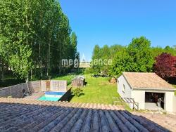 Les + : Piscine 9m x 4m, terrasse en bois exotique de qualité, 2 abris voitures, 2 garages, 1 atelier, vue dégagée sur la campagne sans vis-à-vis.