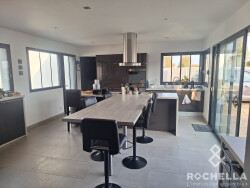 Découvrez cette magnifique maison contemporaine de 139 m² habitables, construite en 2021, située dans un cadre idyllique. Cette demeure de plain-pied sur un terrain de 1664 m² vous offre un espace de vie lumineux et spacieux. Le séjour de 73 m² baigné de lumière est parfait pour les moments de détente en famille ou entre amis. La cuisine américaine, aménagée et équipée, est un véritable atout pour les amateurs de cuisine. Les quatre chambres, dont deux salles d'eau, garantissent intimité et confort pour chacun des membres de la famille. Profitez d'une terrasse de 50 m², idéale pour les soirées estivales et les repas en plein air. La piscine de 6 x 4 m ajoute une touche de luxe et de détente à votre quotidien. Les ouvertures en aluminium et les portes à double vitrage assurent une isolation thermique et phonique optimale, tout en offrant une vue dégagée sur l'extérieur. Le chauffage individuel garantit une température agréable toute l'année. Le stationnement intérieur pour deux véhicules vous offre sécurité et praticité. Imaginez-vous vivre dans cette maison contemporaine, où chaque détail a été pensé pour votre bien-être. Les finitions neuves et l'état impeccable de l'intérieur vous promettent un cadre de vie exceptionnel. La vue dégagée et l'exposition sud-ouest vous offrent une luminosité naturelle tout au long de la journée. Cette maison est bien plus qu'un simple logement, c'est un véritable havre de paix où chaque instant devient un moment de bonheur. À seulement 5 minutes à pied, vous trouverez un arrêt de bus pour vos déplacements quotidiens. En 10 minutes à pied, vous pourrez rejoindre une maternelle et une école élémentaire, idéales pour les familles. Plusieurs médecins généralistes sont également accessibles en 5 minutes en voiture. La crèche est à 10 minutes en voiture. La maison est éligible à la fibre optique, garantissant une connexion internet rapide et fiable.