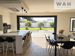 Le jardin paysagé accueille une piscine, un salon d'été couvert, un agréable espace détente ainsi qu'un terrain de pétanque, parfait pour profiter pleinement des beaux jours. La maison est traversante, avec un espace de vie et des extérieurs exposés Sud-Ouest, garantissant une belle luminosité tout au long de la journée. Un garage de 35 m2 complète cette maison, avec la possibilité de stationner plusieurs véhicules à l'intérieur comme à l'extérieur. Prestations de qualité : climatisation réversible, baies vitrées à galandage, matériaux de qualité.
