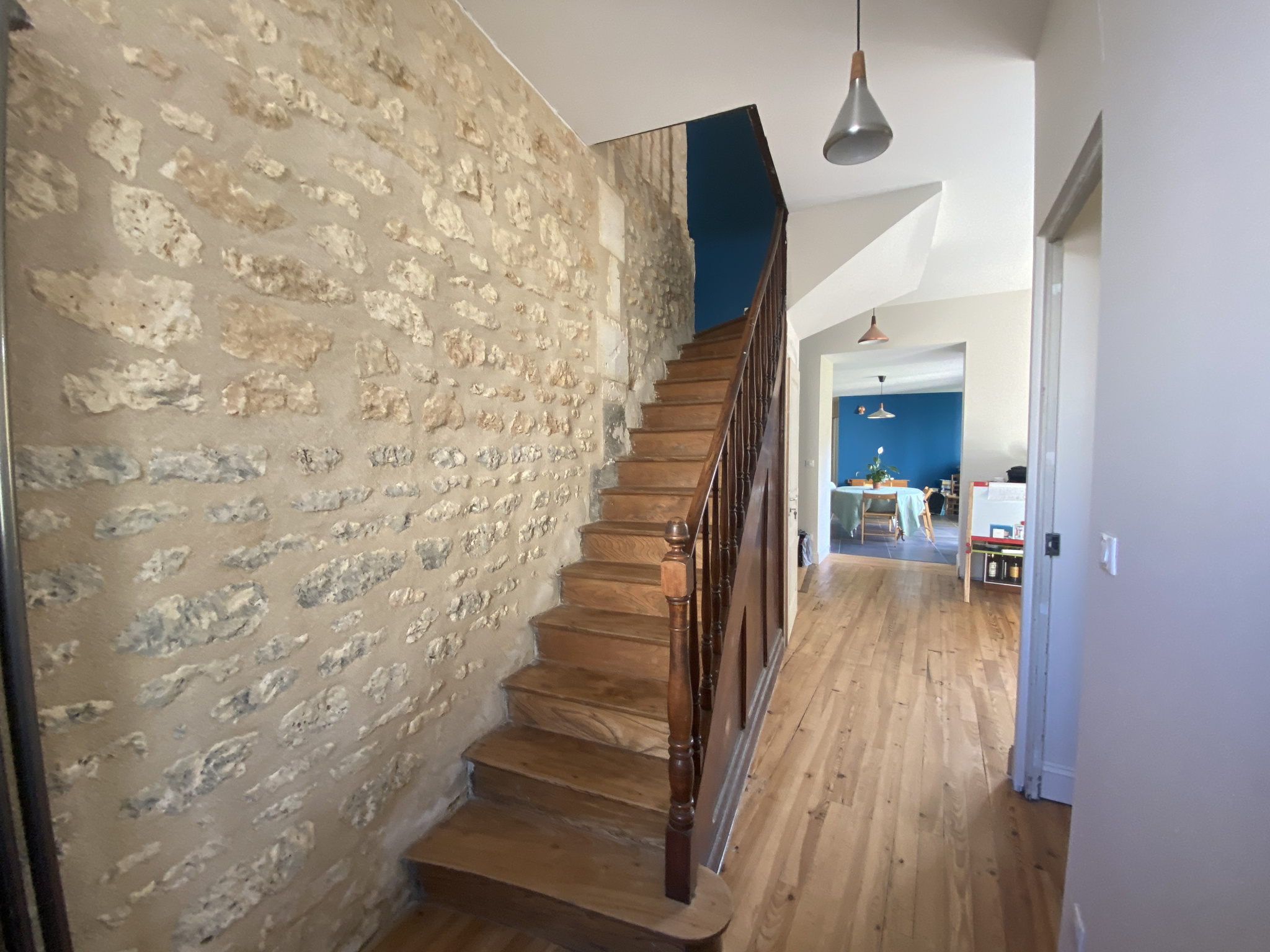 Habiter dans la plus belle région de la Charente Sud, habiter à la campagne avec la plus belle vue de cette région, habiter dans une maison contemporaine spacieuse et lumineuse au bord d'un hameau et à 10 km des commerces et des écoles, habiter dans une maison avec possibilité (sans frais) de diviser en deux habitations plein pieds indépendantes ou en habitation et gîte. Maison récente (2007, 180 m2 habitable) de belle qualité et ayant bien pensée dans sa distribution, sur un terrain de presque 1 HA, sans aucun vis-à-vis, au calme avec des vues panoramiques. Une des deux entrées, côté rue, donne accès à une entrée avec vestiaire, un ravissant séjour avec des grandes baies vitrées sur la nature vallonnée, une cuisine équipée, deux chambres, une buanderie, une salle de bain (bain et douche) et wc. La deuxième porte entrée, au niveau du parking et le jardin, donne accès à une grande pièce de vie avec coin cuisine, deux chambres, une salle d'eau, un wc, une cave et un garage. Les deux niveaux sont connectés par un escalier intérieur en bois. Très belle propriété, bien entretenue et avec tout le confort comme double vitrage PVC, chauffage par PAC, plancher chauffant aux deux étages, volets partout. A saisir !!