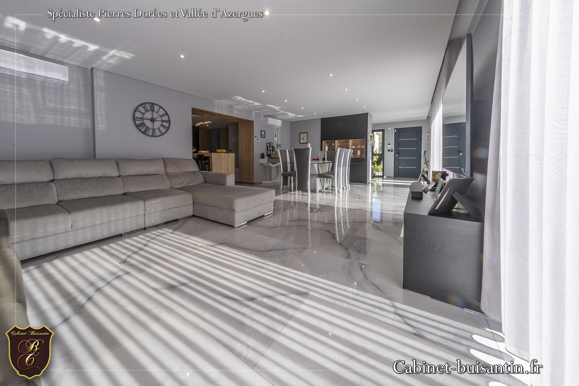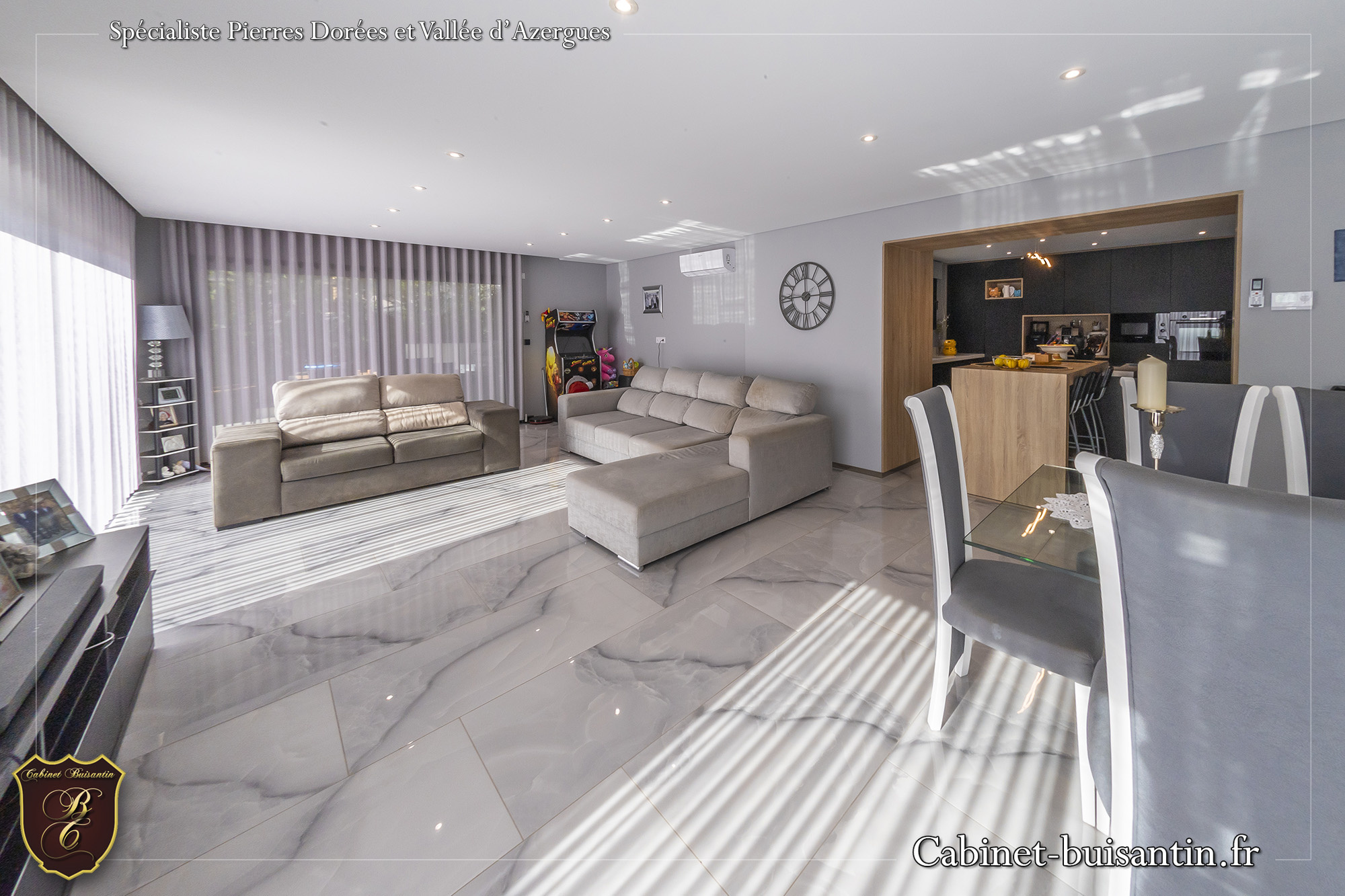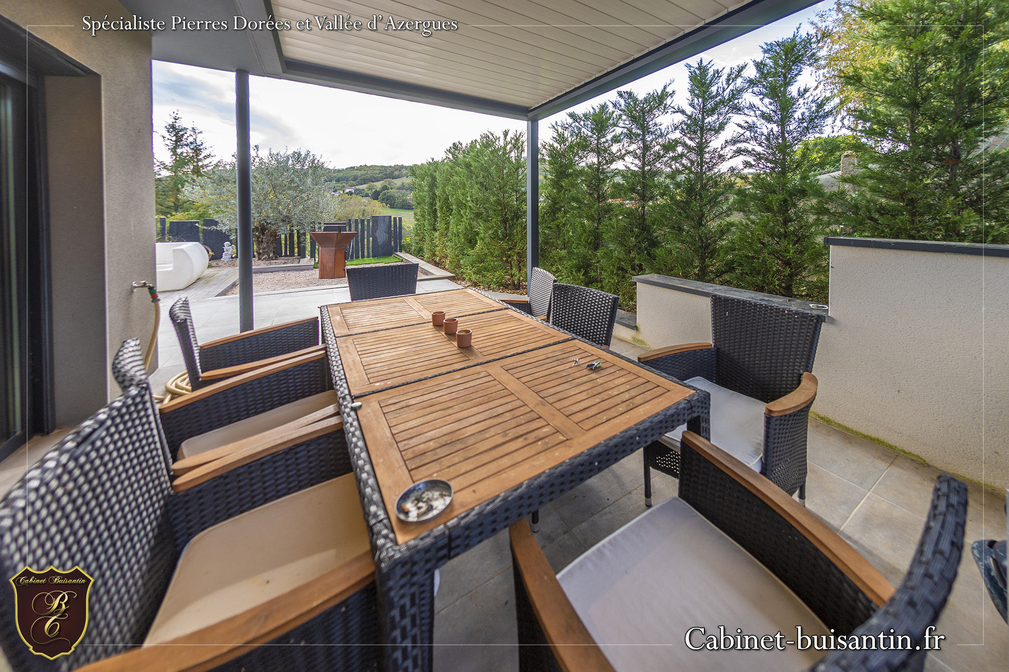 TERNAND - A 5 minutes du Bois d'oingt, sur la commune de Ternand avec école, commerces et commodités, maison haut de gamme au style contemporain (RT 2012), offrant une surface habitable d'environ 200 m2 avec vue imprenable. Elle comprend au rez-de-chaussée: Entrée, séjour spacieux d'environ 51 m2 donnant sur terrasse et espace piscine, cuisine équipée, suite parentale avec dressing, salle d'eau, buanderie et wc avec lave-mains. A l'étage, chambre avec salle d'eau et dressing, 2 chambres avec placards, salle de bains et wc. Plus au dernier: combles en partie aménagée (arrivée chauffage et électricité). Une piscine de 8 m x 3.5 m avec volet roulant, une grande terrasse avec vue imprenable et un garage non attenant d'environ 35 m2 complètent ce bien. Le tout sur un terrain d'environ 2 897 m2 exposé plein sud. Maison lumineuse offrant de beaux volumes et des prestations de qualité (domotique, climatisation, matériaux, ...). Plus de photos et renseignements sur ce bien ou la commune de TERNAND (transports, écoles-collège, commerces, loisirs..) sur notre site internet CABINET BUISANTIN ou contacter Virginie FALATIN au 06.75.94.31.39.