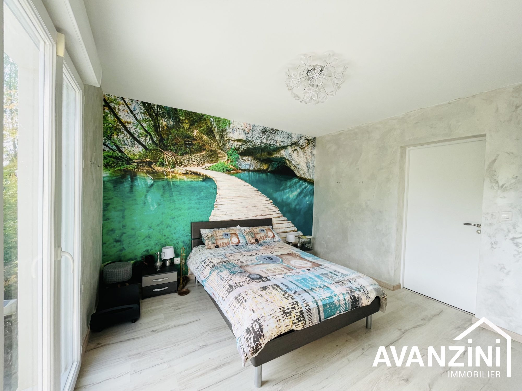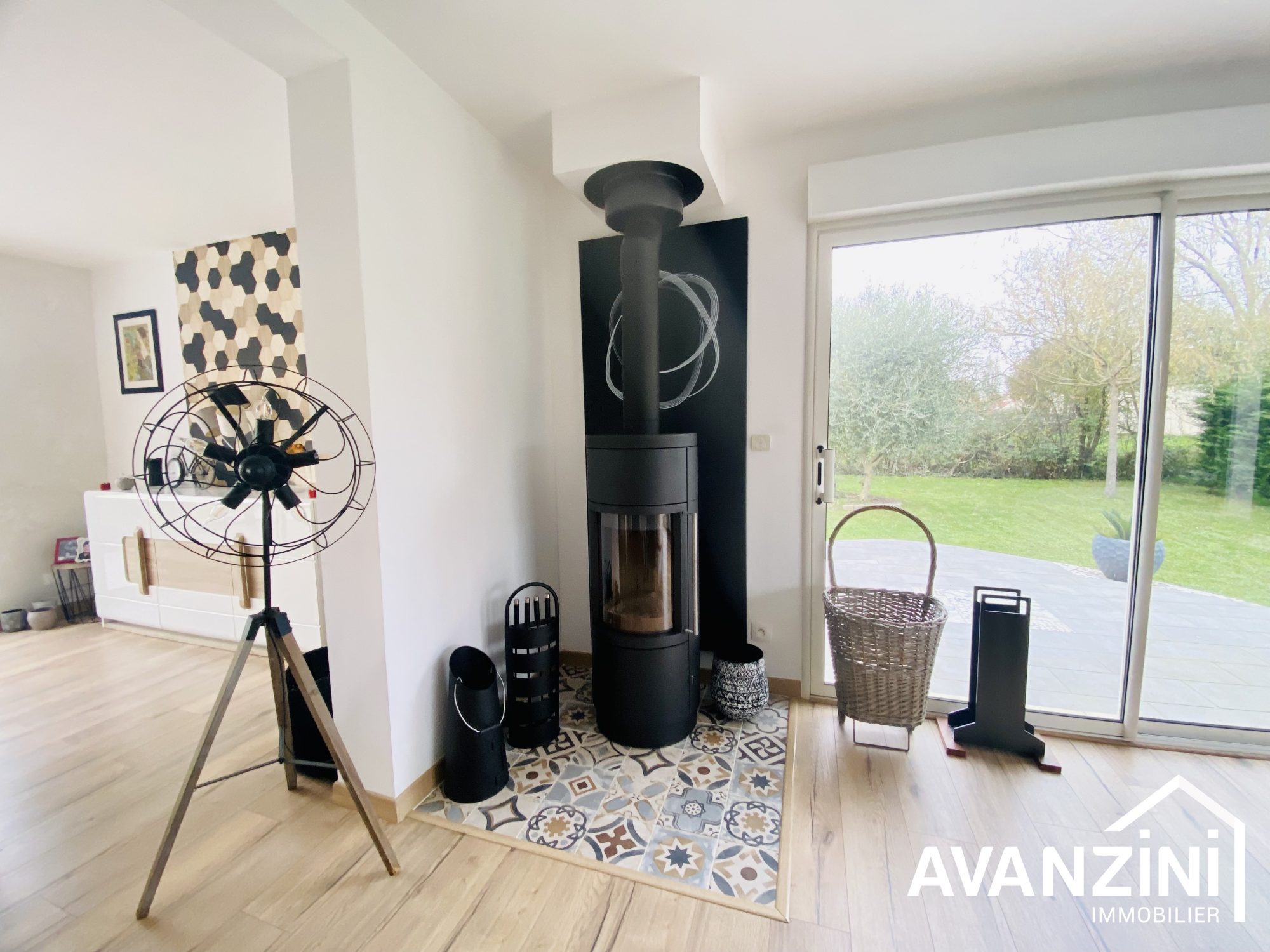 Au rez-de chaussée : une vaste entrée cathédrale avec placard, une chambre donnant sur le jardin avec sa salle d'eau, un w.c. avec lave-mains, un grand espace de vie de plus de 60m2 composé d'un salon, d'une salle à manger et d'une cuisine ouverte entièrement équipée et aménagée. Ces espaces sont baignés de lumière et donnent tous sur une grande et belle terrasse. A cet étage, vous bénéficiez également d'un plancher chauffant et d'un poêle à bois. Les 3 baies vitrées sont en double vitrage aluminium et les autres fenêtres sont en double vitrage pvc et volets électriques partout.