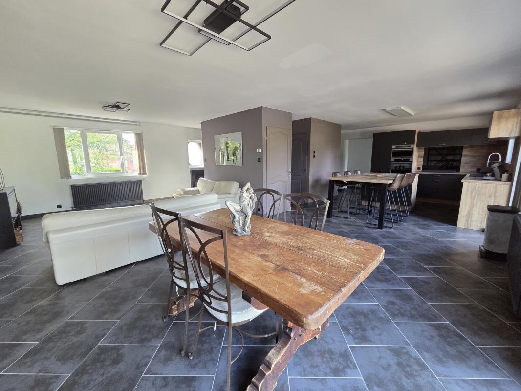 Découvrez cette magnifique maison contemporaine, un véritable joyau architectural alliant élégance et fonctionnalité. Construite en 1948, cette demeure de 177,32 m² a été méticuleusement entretenue et modernisée pour offrir un cadre de vie exceptionnel. Imaginez-vous dans un spacieux séjour de 97 m², baigné de lumière naturelle grâce à ses grandes ouvertures en PVC/aluminium à double vitrage. La cuisine américaine, aménagée et équipée, est un véritable espace de vie convivial, parfait pour les repas en famille ou les soirées entre amis. Cette maison comprend 5 chambres confortables, une salle de bains et une salle d'eau, ainsi que 2 WC, offrant tout le confort nécessaire pour une vie quotidienne agréable. L'isolation en laine de verre et la toiture en bac acier isolée garantissent une excellente performance énergétique. Profitez d'une terrasse de 20 m², idéale pour les dîners en plein air ou les moments de détente, avec une vue imprenable sur le jardin. Un stationnement intérieur est également disponible pour votre commodité. Située dans un quartier résidentiel prisé, cette maison est proche de toutes les commodités. À seulement 5 minutes à pied, vous trouverez une maternelle et une école élémentaire, tandis qu'à 10 minutes à pied, vous pourrez déguster des mets délicieux dans l'un des deux restaurants à proximité. Pour vos courses quotidiennes, une alimentation générale se trouve à 15 minutes à pied. Les transports en commun sont également bien desservis, avec un bus à 5 minutes en voiture. En cas d'urgence, un hôpital est accessible en 5 minutes en voiture, et un médecin généraliste se trouve à 10 minutes à pied. Plusieurs crèches et collèges sont également disponibles à proximité. Ne manquez pas cette opportunité unique de vivre dans une maison contemporaine alliant charme d'antan et modernité. Contactez-nous dès aujourd'hui pour organiser une visite et découvrez par vous-même tout le potentiel de cette propriété exceptionnelle.