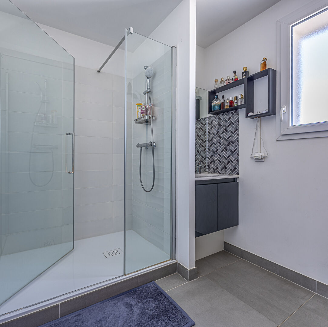 En exclusivité chez Rochella, maison contemporaine de plain-pied à vendre sur la charmante commune de L'Houmeau. Construite en 2021, elle est située dans un quartier récent et offre une superficie habitable de 95m² sur une parcelle de 397m². Ce bien est composé d'une entrée avec placard, d'un WC séparé, d'une grande et lumineuse pièce de vie traversante, avec salon, espace dinatoire et d'une cuisine équipée-aménagée avec baie atelier. L'espace nuit est composé de 2 chambres (dont 1 avec dressing ) et d'une salle d'eau. L'extérieur offre d'un côté, un jardin paysagé avec terrasse et auvent pour profiter de toutes les saisons, et de l'autre côté, un espace reposant sous une belle pergola bioclimatique. Un garage traversant et deux places de stationnement extérieur complètent les prestations. À noter, la possibilité de stationner un camping-car, bateau ou van aménagé sur la parcelle.