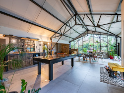 Maison contemporaine de prestige Style industriel, prestations haut de gamme Découvrez cette propriété d'exception au design industriel affirmé, alliant volumes spectaculaires, confort moderne et matériaux nobles. Nichée sur un terrain de 1 871 m2, cette maison de plain-pied développe une surface habitable de 389 m2, pensée pour offrir un cadre de vie unique et fonctionnel. Dès l'entrée, laissez-vous séduire par une pièce de vie majestueuse de plus de 115 m2, baignée de lumière, où les lignes épurées et les finitions haut de gamme créent une atmosphère contemporaine et chaleureuse. La maison principale dispose d'une chambre de 14 m2, équipée de sa propre salle d'eau ainsi qu'une suite parentale composée d'une chambre spacieuse de 17 m2, d'une salle de bain avec douche et baignoire reliées par un dressing sur mesure, garantissant confort et intimité. Une buanderie de plus de 20 m2 complète l'aménagement intérieur, ainsi qu'un espace spa de 18 m2 avec douche vous promet des moments de détente absolue. Un garage de 59 m2 vient parfaire l'ensemble, offrant un vaste espace de stationnement et de rangement. Attenant à la maison principale, un appartement avec mezzanine de plus de 63 m2 offre de multiples possibilités : location saisonnière, logement d'amis ou espace familial supplémentaire. Enfin, un loft indépendant de plus de 82 m2, qui permet d'accueillir une activité professionnelle, une entreprise ou une profession libérale, combinant ainsi vie privée et activité pro dans un cadre idéal. Les plus : Architecture industrielle élégante et intemporelle Prestations haut de gamme et finitions soignées Grands volumes lumineux et ouverts Espace professionnel et logement complémentaire sur le même site Une propriété rare, à la fois moderne, fonctionnelle et raffinée, idéale pour les amateurs de design et les porteurs de projets alliant résidence principale et activité professionnelle.