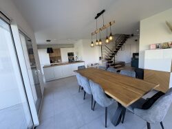 Entrée ouverte avec placard, donnant sur pièce de vie de 55m² avec cuisine aménagée et équipée, ainsi qu'une arrière cuisine attenante. Suite parentale dont dressing traversant et sa salle d'eau. Chauffage au sol