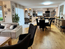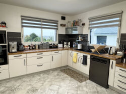 Superbe contemporaine lumineuse entre nature et littoral A quelques minutes des plages et 5 mn de Lesneven, dans un environnement champêtre et paisible, cette belle maison contemporaine de 2008 conjugue espace, confort et élégance. Édifiée sur un terrain paysagé de 1 750 m², elle offre près de 242 m² habitables, complétés d'un double garage de 61 m² et d'une dépendance garage ou atelier de 25 m². Une réalisation soignée, parfaitement entretenue, où chaque détail a été pensé pour le bien-être quotidien. Dès l'entrée, le ton est donné : volumes généreux, lumière traversante et finitions de qualité. La pièce de vie s'ouvre sur une vaste terrasse plein sud, propice aux repas en extérieur et aux moments de détente face au jardin. La cuisine, aménagée et équipée, allie fonctionnalité et convivialité. En retrait, une suite parentale avec dressing et salle d'eau privatifs assure intimité et confort. Une arrière-cuisine et un grand garage complètent ce niveau. L'escalier mène à un grand palier-bureau distribuant trois chambres, une salle de bain avec douche et baignoire, un WC indépendant, ainsi qu'une grande pièce atelier chauffée d'environ 60 m², idéale pour des chambres supplémentaires, les loisirs ou espace créatif. Confort, performance et sérénité, cette maison a bénéficié de nombreux travaux récents : Double pompe à chaleur neuve (2025) Sol pièce de vie en chêne massif de Brocéliande Isolation renforcée du garage et de l'atelier (2025) Cuve de récupération d'eau de pluie 5 000 L (alimentant WC et machine à laver) Portail électrique, visiophone, cour bitumée, jardin clos et arboré Un cadre de vie rare, ouverte sur la nature, la propriété respire le calme et la sérénité. A seulement 4 km de la mer, elle séduira les amoureux de grands espaces souhaitant vivre entre campagne et littoral, dans une maison économe et sans travaux. Pour plus d'informations et une visite contactez Sandrine ANDRE-GENDRON au 07.83.83.75.33. Agent commercial (EI) RSAC 841058985 BREST Les informations sur les risques auxquels ce bien est exposé sont disponibles sur le site Géorisques : https://www.georisques.gouv.fr (3.40 % honoraires TTC à la charge de l'acquéreur.) SANDRINE ANDRE GENDRON (EI) Agent Commercial - Numéro RSAC : 84105898500018 - .