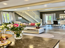 Imaginez-vous vivre dans cette demeure élégante, où chaque détail a été pensé pour votre confort. La cuisine américaine, aménagée et équipée, est un véritable espace de vie convivial. Les grandes ouvertures en PVC à double vitrage laissent entrer une lumière naturelle abondante, créant une atmosphère chaleureuse et accueillante avec une jolie vue dégagée.