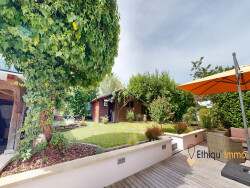 À l'extérieur, la maison dispose d'un grand garage indépendant, équipé en électricité et éclairage. Un espace de stockage supplémentaire et une zone ombragée attenante à la terrasse complètent les prestations.